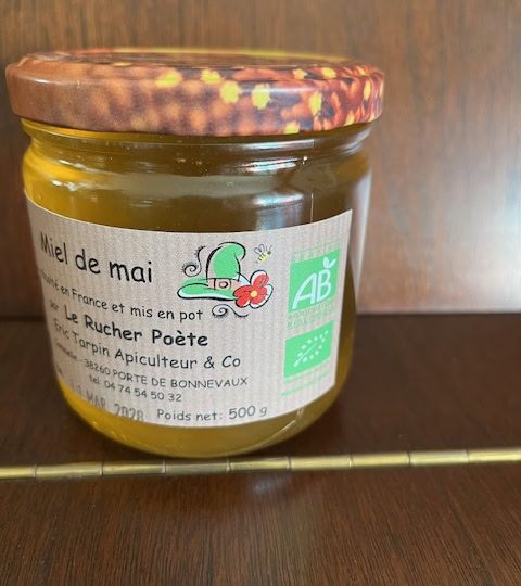 Nous élevons nos propres reines utilisons de la cire bio, nous fabriquons le sirop de nourrissement à partir de sucre bio de betterave française, nous pratiquons l’encagement de la reine pour lutter contre le varroa. Nos ruchers sont principalement autour de chez nous dans un souci de limiter notre bilan carbone. Les abeilles butinent dans un rayon de 3 km. Nous récoltons, du pollen et du miel d’acacia, d’été (châtaignier) miel de tilleul dans les ruchers autour de chez nous, certaines années du sapin (Miellat de puceron qu’on ne récolte que tous les 5 à 10 ans) . Les récoltes se font de mai à aout. Nous faisons l’extraction, la mise en pot et l’étiquetage à la main, si le miel a besoin d’être défigé, nous ne dépassons pas les 40 degrés afin qu’il conserve ses qualités nutritives et organoleptiques.